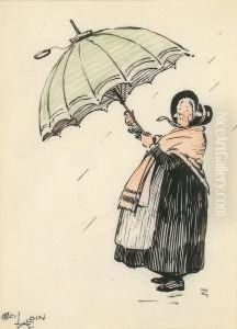 Carriage In The Rain (+ Woman Reading By A Doorway, Pastel On Canvas; 2 Works)