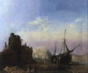 Fisherman On A Rocky Coast/ A Northeast Coastal View