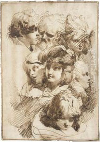 A Sheet Of Studies Of Heads