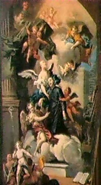 Modello Per Pala D'altare Con Santi E Angeli