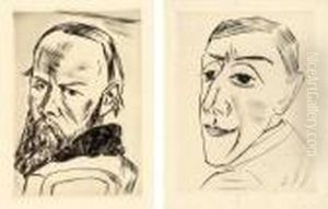 Selbstbildnis 1918. - Familienszene, Familie Beckmann. Blatt 1 Und 2 Der Folge