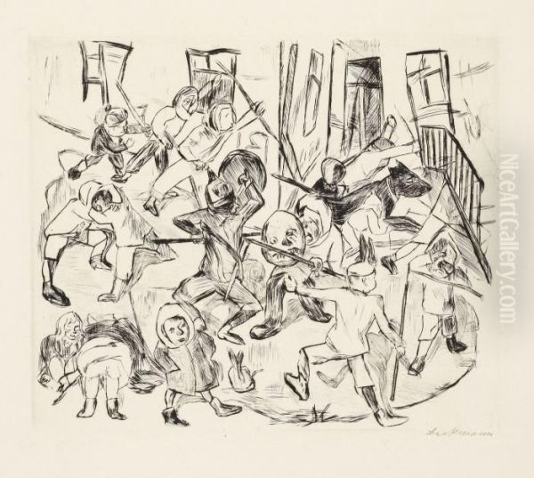 Spielende Kinder, Breitformat Oil Painting by Max Beckmann