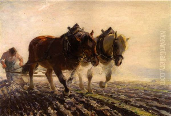 Pflugender Bauer Oil Painting by Max Bergmann