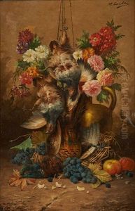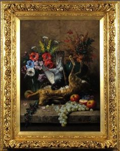 Nature Morte Avec Fleurs, Gibier, Homard Et Raisins Sur Entablement En Pierre