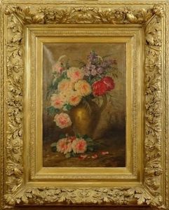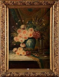 Vase Fleuri De Roses Et Coupe Fleurie Sur Un Entablement