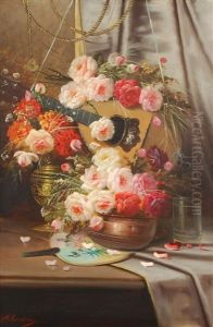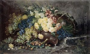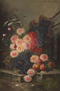 Nature Morte Au Vase De Roses Et Aux Raisins