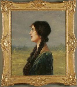 Bildnis Einer Schwarzhaarigen Frau Im Profil Nach Links Vor Landschaftshintergrund