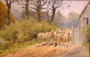 Federvieh Am Gatter Oil Painting by Max Josef Haenger Sr.