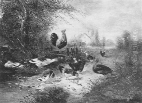 Federvieh In Einer Landschaft Oil Painting by Max Josef Haenger Sr.