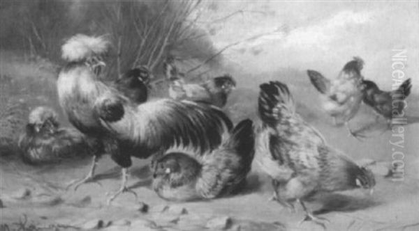 Huhnerhof Oil Painting by Max Josef Haenger Sr.