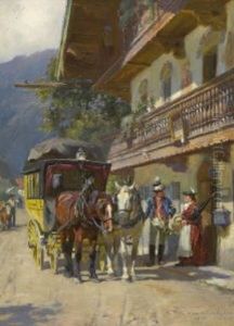 Bring the timeless beauty of Max Joseph Pitzner's An Der Poststation. into your home with a handmade oil painting reproduction. Carefully recreated on canvas by skilled artists using traditional techniques, this piece captures the delicate brushwork, subtle light, and vibrant color of the original masterpiece. With museum-level quality and rich texture, it brings elegance and artistic depth to any space. Enjoy free shipping and make this masterpiece a part of your personal collection.