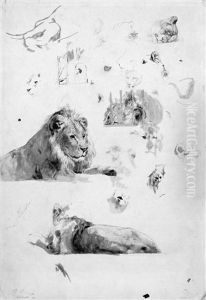 Liegender Lowe Mit Zwei Kranichen (wandpaneel)