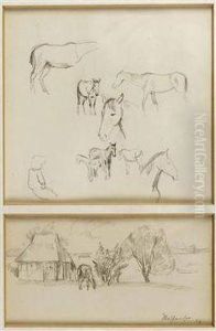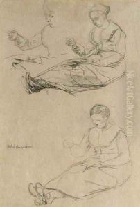 Studienblatt Mit Skizzen Zu Dem Gemalde 'strickendes Madchen Mit Kuh'