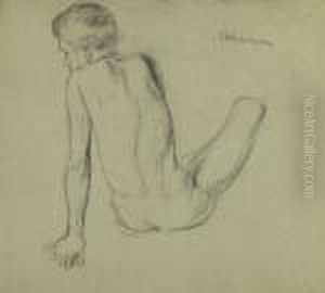 Ruckenansicht Eines Sitzenden Knaben