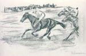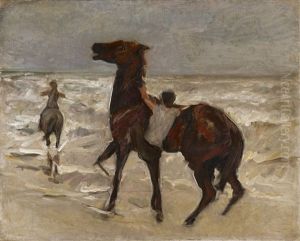 Zwei Reiter Am Strand Nach Links - Studie (two Riders On The Beach Turned To The Left - Study)