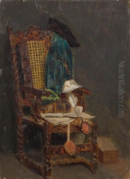 Stillleben - Alter Stuhl, Dreimaster, Buch Mit Siegel
