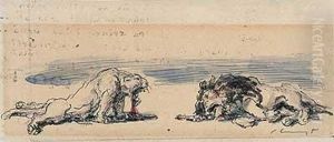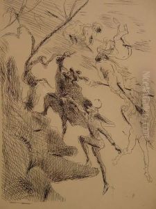 Karikatur (faun Und Nymphe). Arabeske (eine Frau Jagt Menschen Mit Vogelmasken)