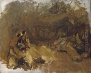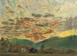 Das Gemalde Zeigt Eine Grune Landschaft In Der Luneburger Heide