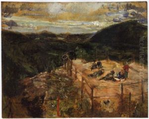 Landschaft Bei Neukastel Mit Einem Bauernpaar