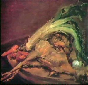 Stilleben Mit Lauch Und Huhn