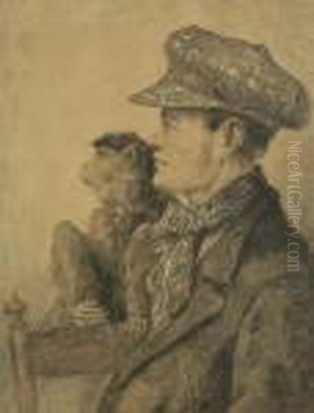 "mann Mit Affchen" Mischtechnik, Signiert, Ruckseitig Klebezettel: Berliner