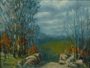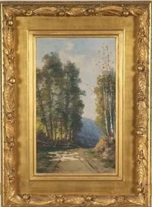 Landscape With Travelers On A Dirt Road And Distant Castle