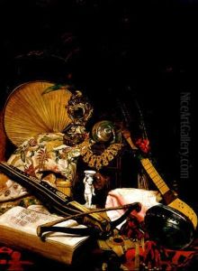 Stilleben Mit Armbrust, Aufgeschlagenem Foliant, Pergamenturkunde, Muschel Und Saiteninstrument