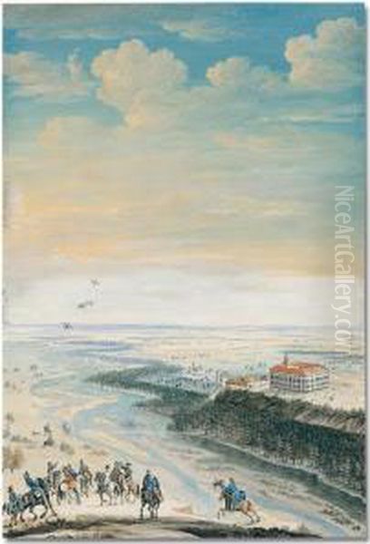 Schloss Lichtenberg At Lech, With A Group Of Falconers In The Foreground