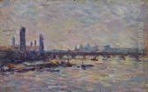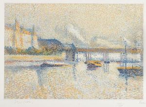 Paris, Personnages Sur Laberge Sous Le Pont Neuf