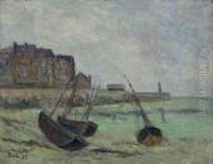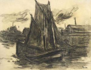 Bateaux Amarres Dans Le Port De Dieppe Au Soleil Couchant