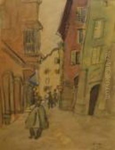 Continental Street Scene With Figures