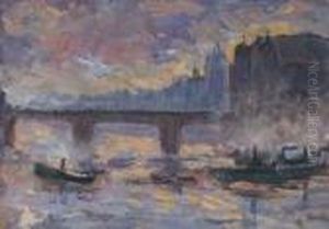 Chalands Sur La Seine Par Temps Gris