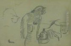 * Maximilien Luce . "portrait De Poilu". Dessin Mine De Plomb Et Encre Signe Du Cachet En Bas A Droite. 9 X 5,5 Cm