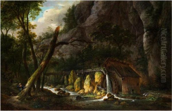 Waldlandschaft Mit Muhle Und Jager