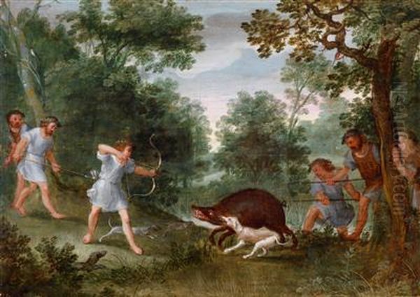 Waldlandschaft Mit Einer Wildschweinjagd