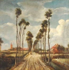 A View On A Farm By A Canal With Travellers On A Road By Abridge