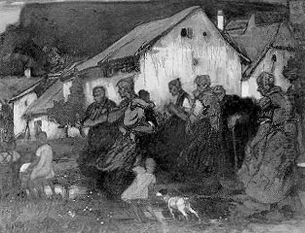 Dorffrauen Mit Ihren Kindern Auf Dem Weg Zur Kirche