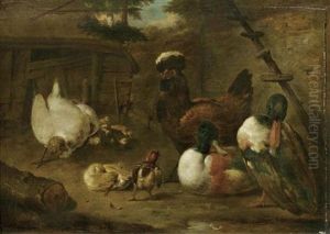 A Cockerel, A Pheasant, A Duck And Other Birds In A Landscape