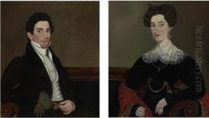 Portrait Of A Gentleman With Doeskin Gloves, Gold Watch And Watch Winder (+ Portrait Of A Lady With Jewels And Paisley Shawl; Pair)