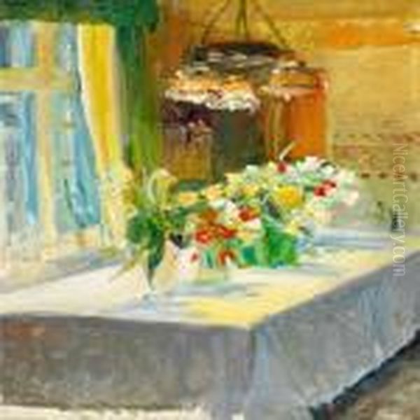 Et Bord Med Blomster Paa Fru Brodersens Fodselsdag