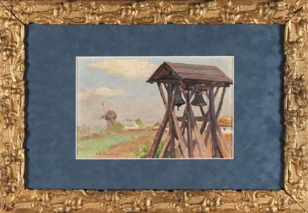 Pejzaz Z Dzwonnica I Wiatrakiem