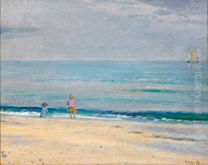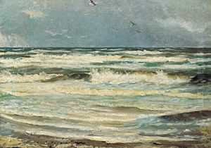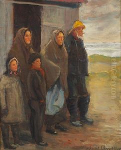 Fiskere vende hjem fra Nordstranden. Aftensol. Studie.