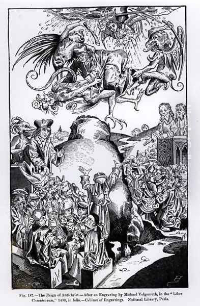 The Reign of Antichrist, from the Liber Chronicarum, published in 1493, illustration from, Science and Literature in the Middle Ages and Renaissance, written and engraved by Paul Lacroix, 1878