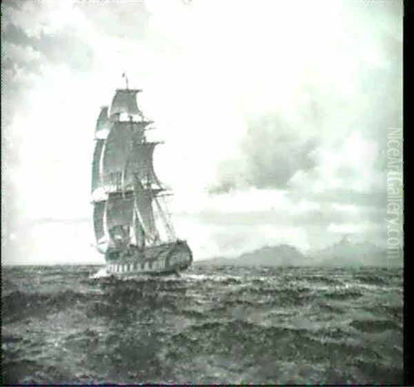 Dreimaster Auf See Vor Gebirgiger Kuste