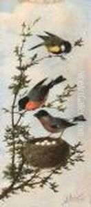 A Trompe L'oeil Of Songbirds; Also A Companion Painting (a Pair)