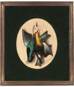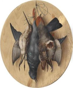 Still Lives Each Depicting Two Differing Dead Birds Hung On A Wooden Board