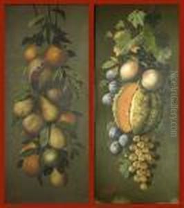 A Trompe L'oieil With Fruit; Also A Companion Painting (a Pair)