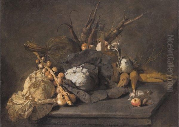 Nature Morte Aux Choux, Aux Oignons,carottes, Panais Et Pommes Toile.