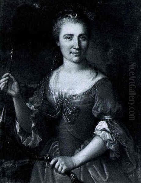 Portrait Of A Lady As Diana, Three Quarter Length, In A Landscape