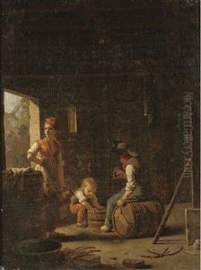 A Peasant Couple With A Child In A Barn